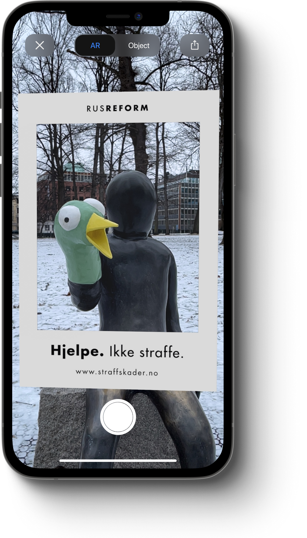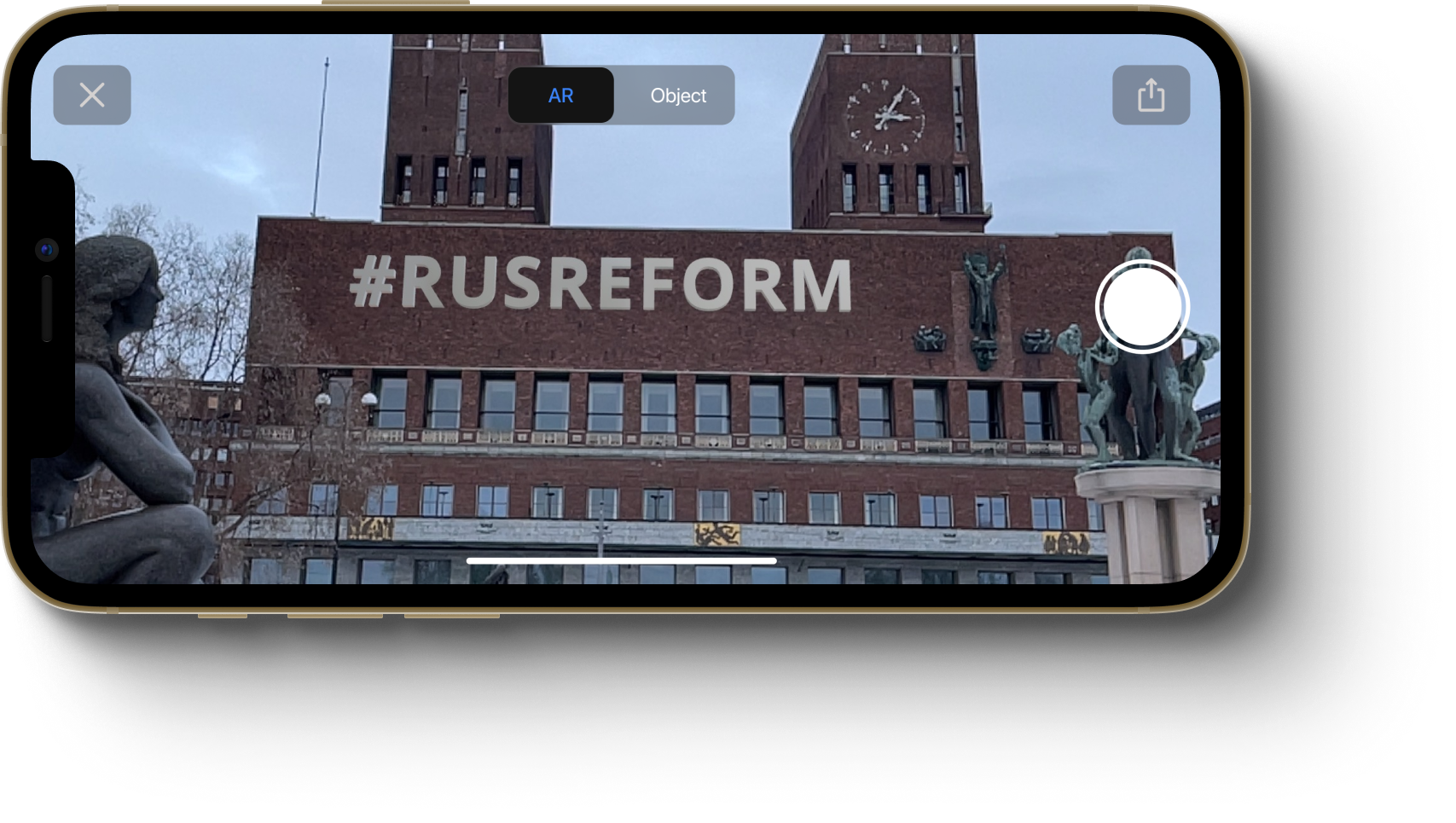 Med vår "#RUSREFORM" grafikk kan du gå rundt i bybildet å plassere emneknaggen rundt om i bybildet. Det kan minne litt om grafitti, men er selvsagt kun digitalt og legger ikke igjen noen fysiske spor på omgivelsene. Finn ditt utsnitt, ta bilde og del på sosiale medier under "#RUSREFORM".